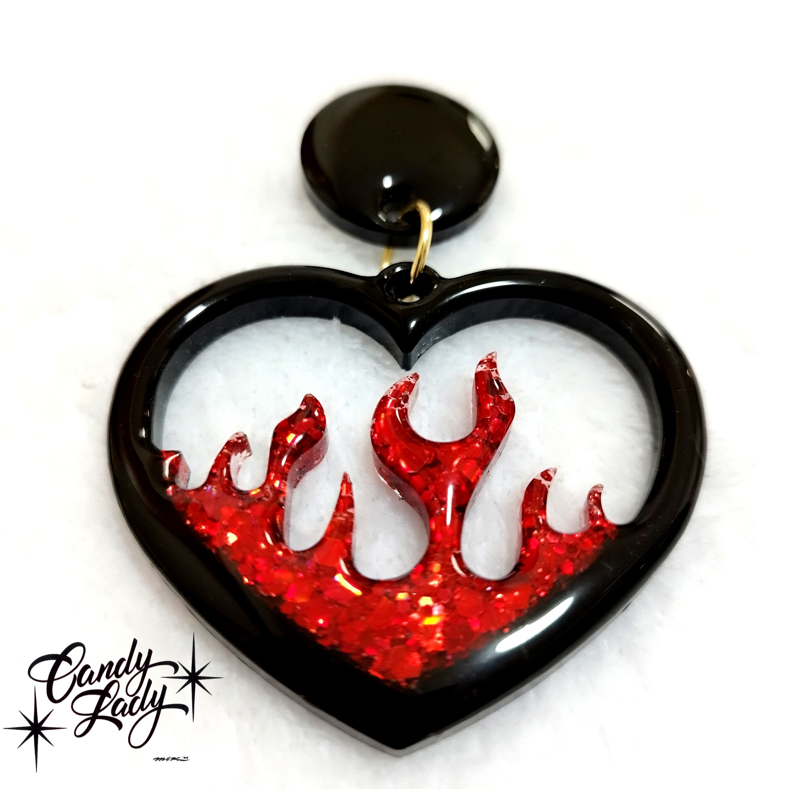 ブラックハートの中に燃え上がる真っ赤な炎。