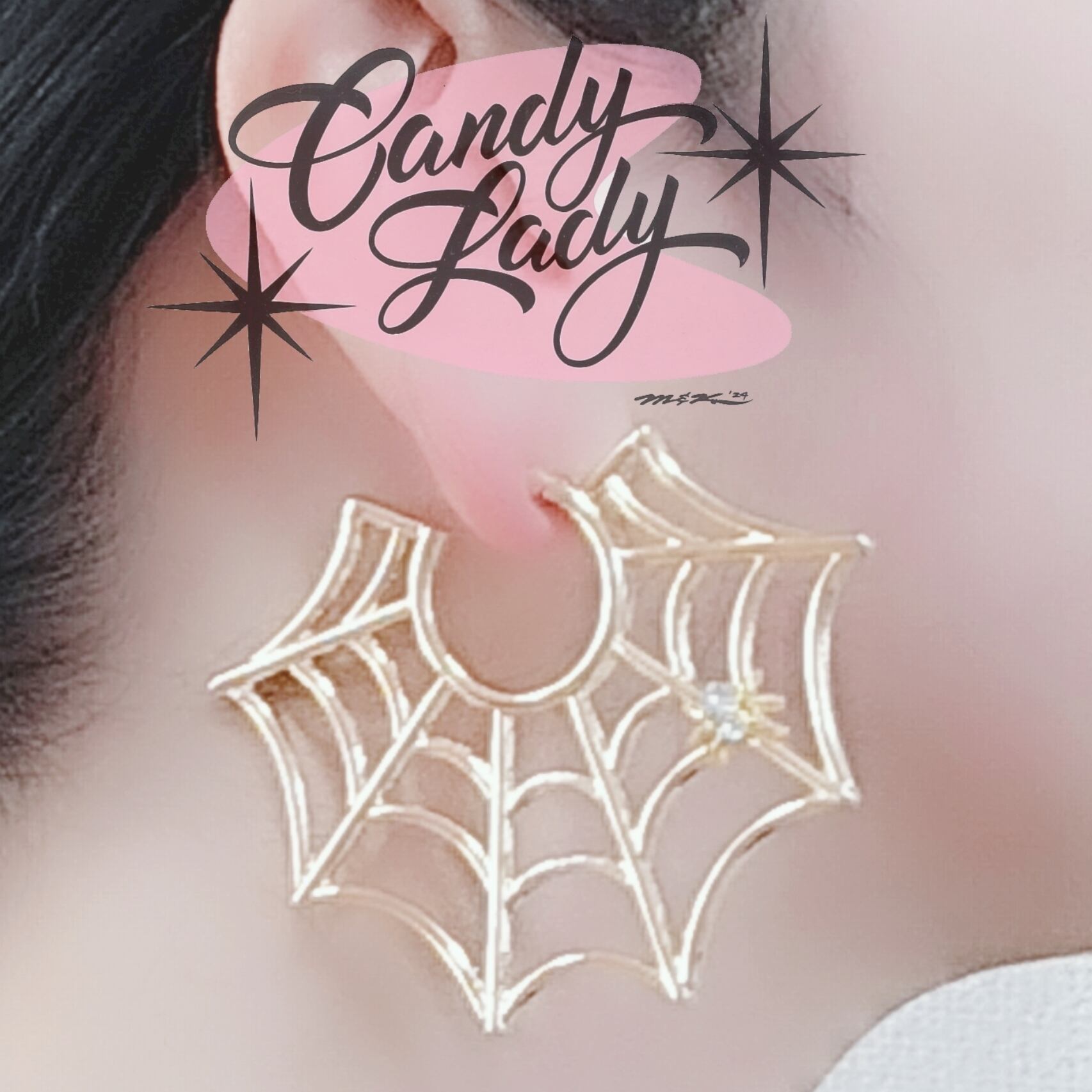 大ぶりな蜘蛛の巣モチーフに小さなジルコニアの蜘蛛がひとつ。