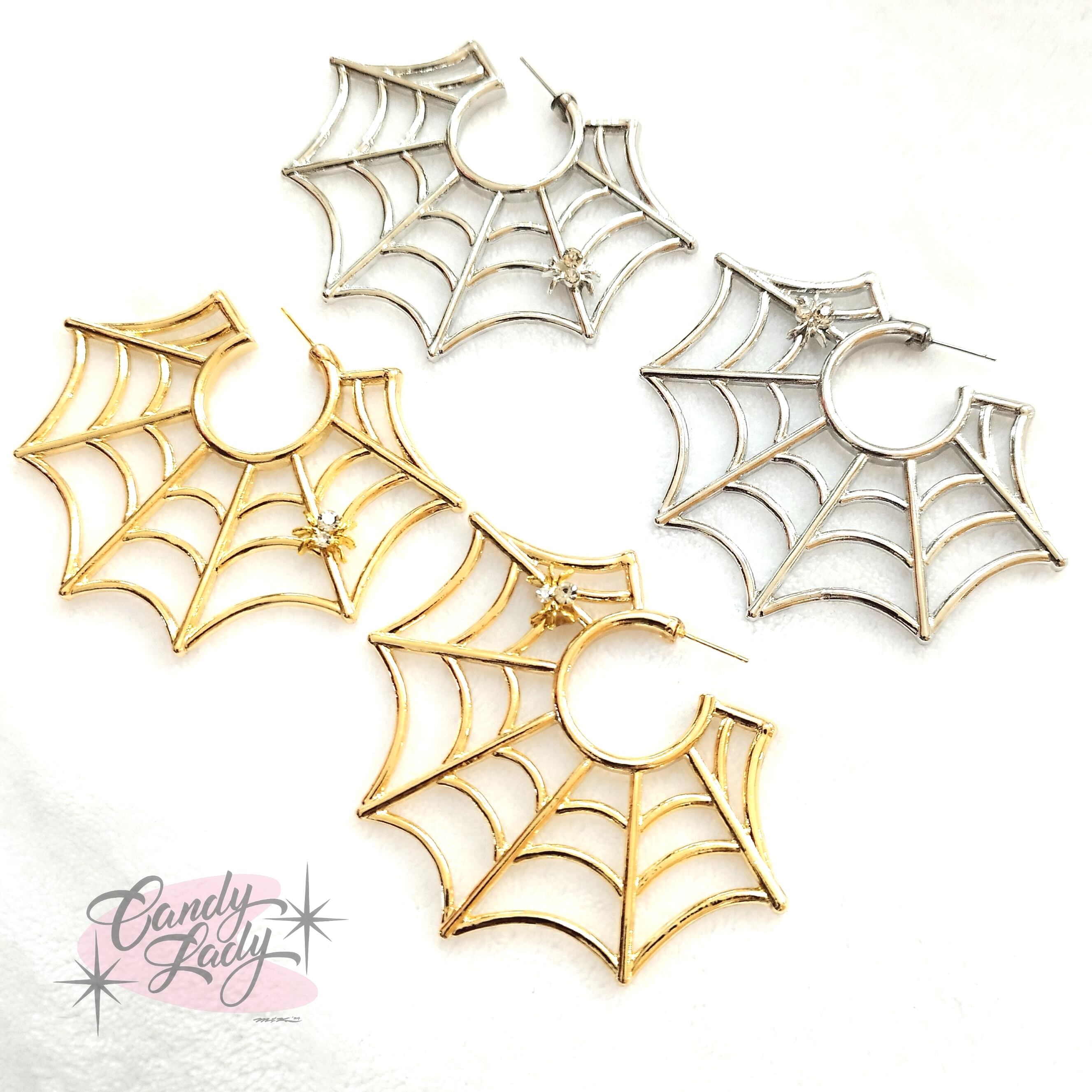 大ぶりな蜘蛛の巣モチーフに小さなジルコニアの蜘蛛がひとつ。
